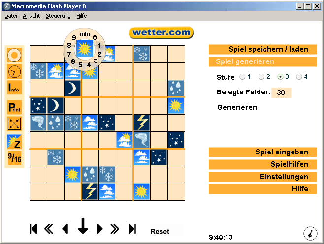 Dieses einmalige Spiel enstand in Zusammenarbeit mit wetter.com, dem Internet-Wetter-Portal. Auf den Seiten von wetter.com können Sie täglich ein wetter.com Sudoku spielen und kennen lernen. Und neugierig darauf werden, was Sie mit den vielen Möglichkeiten der Vollversion alles tun werden!